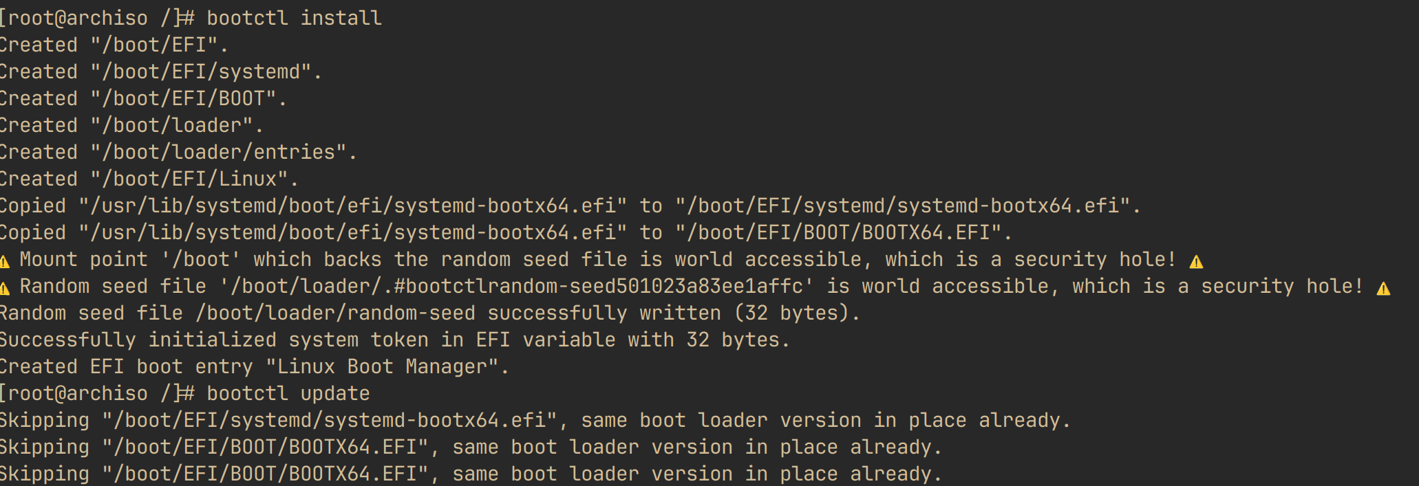 The arch-chroot command allows us to enter the actual Arch Linux installation on the disk, providing an environment where we can make further configurations as if we were booted directly into the installed system.
