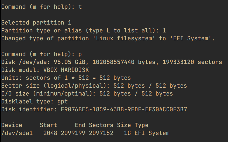 | /dev/sda1 | /boot/efi | 1GB | EFI Boot Partition |