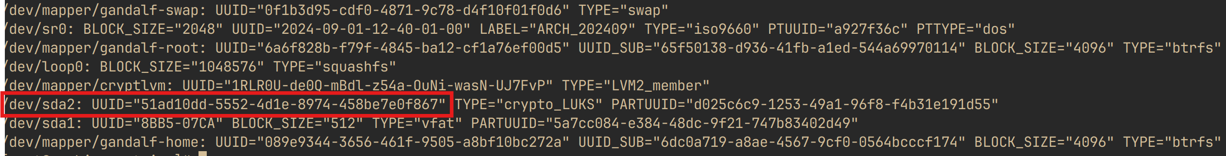 cryptsetup open /dev/sda2 cryptlvm # open the encrypted disk